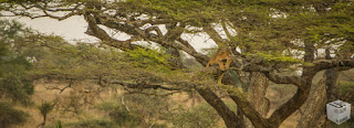 Wir sahen auch wieder viele Elefanten, einige Warzenschweine, eine einzelne Hyäne, die über das Feld zockelte, einen kleinen wunderschön gezeichneten Schakal, viele, viele Nilpferde, die lustig prusteten und das Wasser und den Schlamm mithilfe ihrer Schwänze über ihren gesamten Körper verteilten, und einige Löwen, die vereinzelt auf den Bäumen chillten. Löwen auf Bäumen?! Ja: Löwen auf Bäumen! Cool, oder? :-) Diese Katzen waren aber nicht die einzigen, die sich in die Bäume hinaufgeschlagen hatten: Auch einen Leoparden sahen wir da oben herumhängen! :-) Der war aber noch sehr, sehr schläfrig und hob immer nur 'mal kurz den Kopf, um einen Positionswechsel vorzunehmen, während sein Nachbar, der Löwe, sich nach einiger Zeit dazu entschloss, doch einen Pirschzug vorzunehmen und dafür vom Baum herunterzuklettern. Was für ein Spektakel! :-)